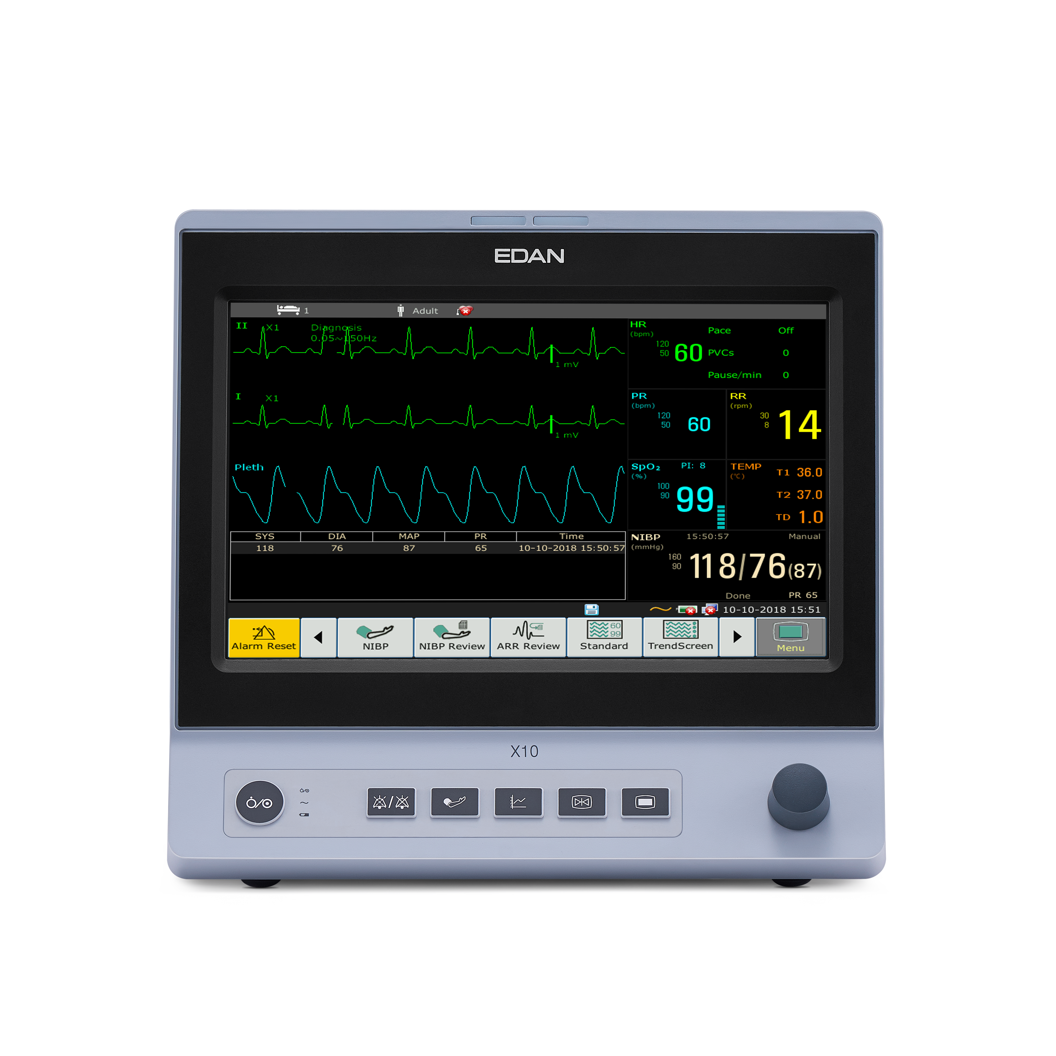 The X10 Patient Monitor fulfills primary clinical requirements in various environments including sub acute, and emergency care. Covering all patient types, from neonate to adult, the new X series is Edan’s most refined monitor yet.