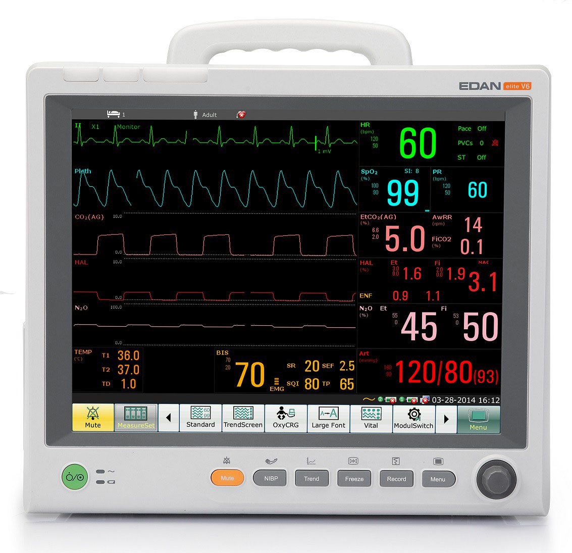 With its plug-and-play modules and an extensive modular rack, Elite V6 is able to monitor a wide range of parameters simultaneously, adapting from critical care to anesthesia monitoring, with additional monitoring capabilities including ICG, RM, and BIS.